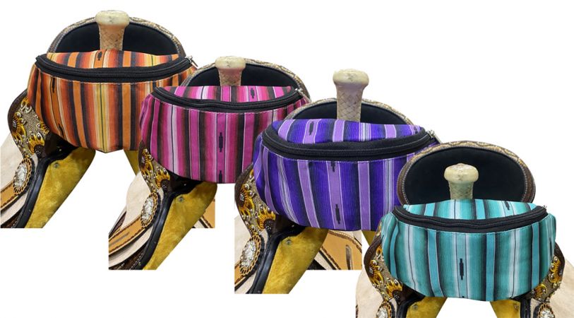Showman® Insulated Nylon Saddle Pouch. Includes two convenient pockets that are ideal for your phone, keys, money, snacks, etc. Simply clip the saddle pouch to the pommel of your saddle with two buckles. Measures 8.5" long by 3.5" wide by 4.5" tall